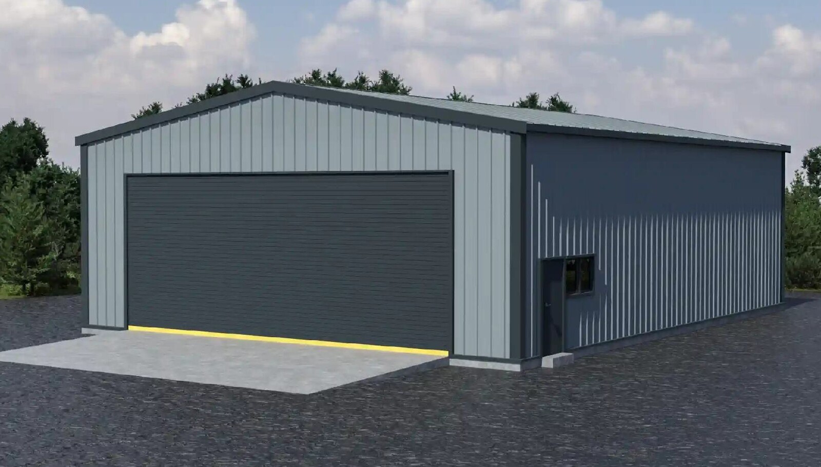 Наружные стены и кровля выполняются из современных сэндвич-панелей и стального профиля с теплоизоляцией, что обеспечивает отличную защиту от холода и температуры, снижает эксплуатационные расходы и создаёт комфортную атмосферу внутри помещения. В конструкции предусмотрены большие ворота (например, 9 м шириной и 4 м высотой) для свободного въезда/выезда техники, а также персональные двери для удобного доступа людей.