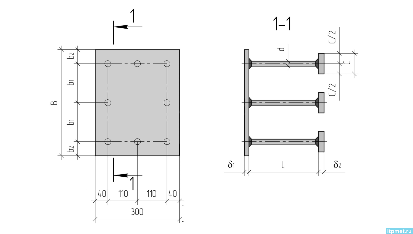 b1 = 110 мм