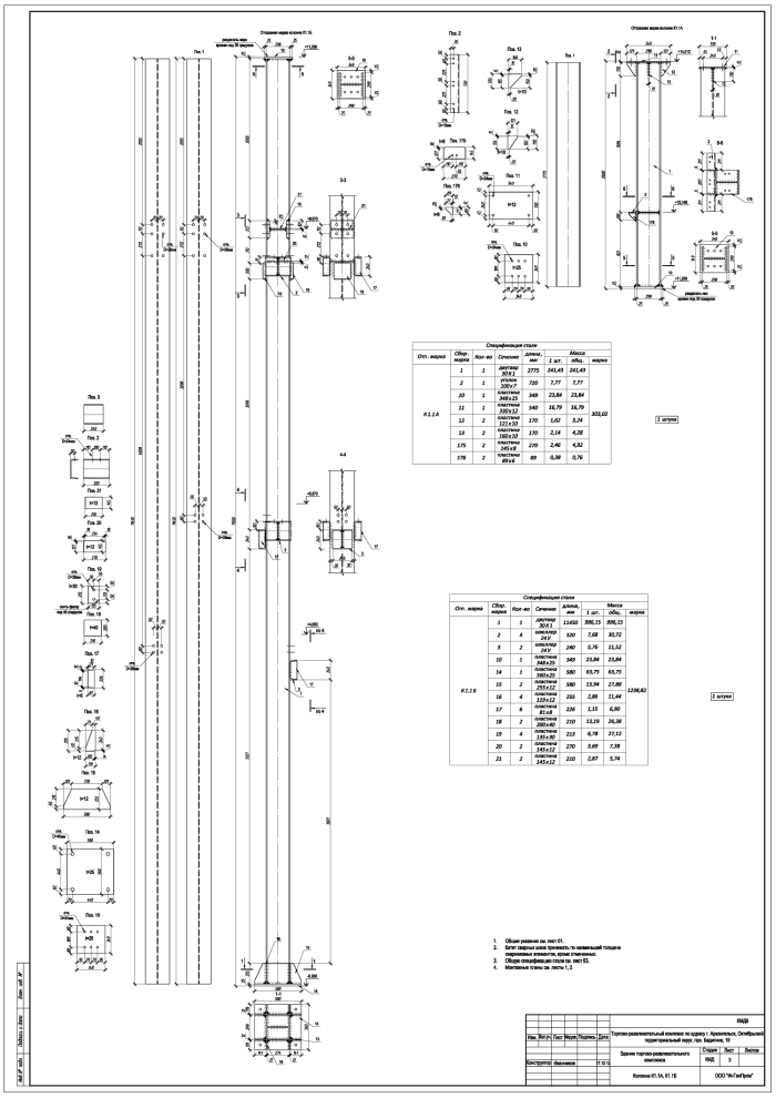 Вторым составляющим проектирования металлоконструкций является комплект рабочих чертежей, который включает в себя (для типа КМ):